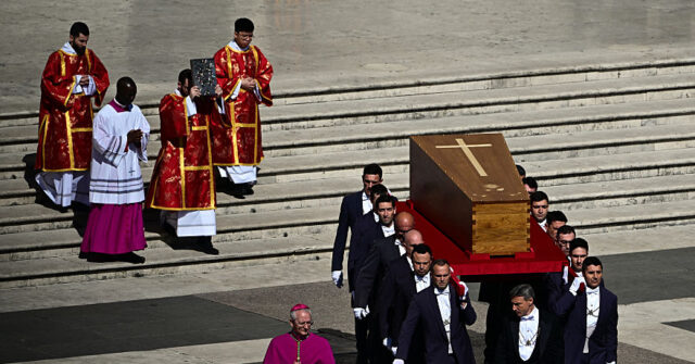 The fault carriers carry the coffin of the late Pope Francis, the funeral ceremony in the Plaza de San Pedro, in the Vatican, on April 26, 2025. (Photo of Andreas Solaro / AFP) (photo of Andreas Solaro / AFP through Getty Images)